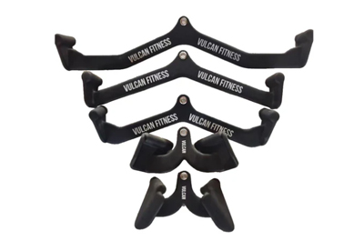 The VULCAN premium Hand Grip Set, composed of sturdy Q235 steel with non-slip ends, provides five superior grip spots for lat pull-downs or rows. These ergonomic handles are made for low row and lat pulldown exercises and offer more comfort and grip. The set weighs 17 kg and has a one-year manufacturer's warranty.